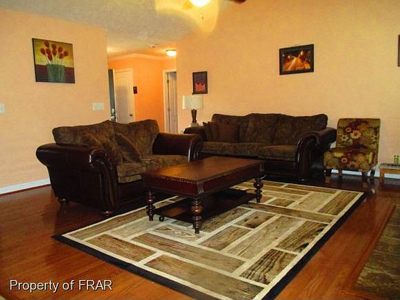 -BEAUTIFUL, well-maintained home has 4 bedrooms, 3 full baths, FENCED IN YARD, DOUBLE GARAGE, cathedral ceiling in FR, FIREPLACE w/GAS LOGS,& more. Double vanities, separate shower, garden tub in Master bath. Bedroom and full bath upstairs. Stainless appliances & cabinets galore in kitchen. CeIling fans, hardwood floors & ceramic tile. Located within 5 min. of Reilly Gate at Ft. Bragg; location offers close proximity to shopping, restaurants, medical facilities, schools, entertainment & more.