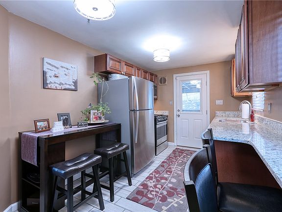 Welcome to 1628 Kiralfy Avenue! This tastefully updated 3 bedroom, 1.5 bath brick ranch is tucked away in a quiet neighborhood in Beechview. Enjoy the beautiful eat-in kitchen with mahogany tone cabinets, stainless appliances, granite counters & breakfast bar. Newer full bath. Ceramic & hardwood floors. Plaster walls. Newer lighting & ceiling fan. New windows, screens, front & back door, front & back storm doors with screens, gutters & downspouts, hot water tank & shutters. Newer stainless appliances, central air and washer & dryer. The clean full basement is great flex space for additional living space, exercise room, laundry with laundry tub, storage and powder room. Garage with auto door opener along with off street parking. Covered rear patio. Shed. Landscaped, corner lot. Walkable distance to the T, restaurants & shopping. Minutes to the city and major highways.