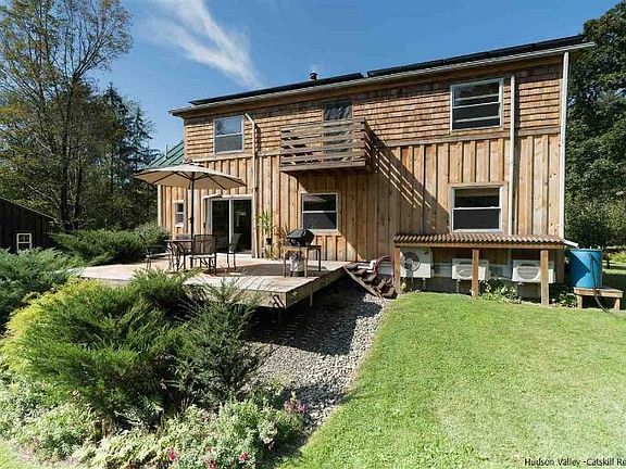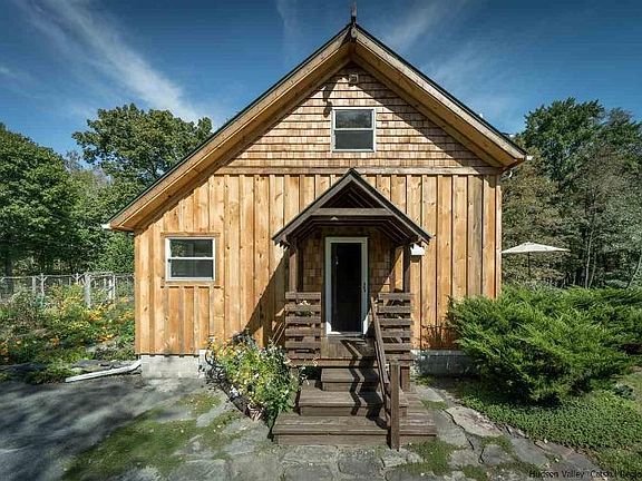 Surrounded by gardens, this beautiful and spacious oasis is waiting to be your home and haven. Renovated from top to bottom by a master builder, you will be delighted by the artistic attention to detail, the open and spacious floorplan, and all the modern conveniences. This is a super energy efficient lifestyle, with heating and cooling heat pump systems, radiant heating in the kitchen, and a new metal roof outfitted with solar panels that convey with the house. With 5 bedrooms and 2.5 bathrooms, you'll have room to spread out or easily work from home, while you gaze out at the exquisite and quiet wood that extends beyond your half acre backyard, dappled with wildflowers. The finishes are superb, including hardwood birch kitchen cabinets, an oversized tub off the master bedroom with heated coils, a suspended balcony overlooking the backyard firepit, and brand new siding made from local pine and cedar shingles. Plus, there is a fantastic outdoor studio with electric service that could easily be converted into a guesthouse. Close to everything, just 15 minutes to Kingston, New Paltz, and the Thruway, on a wooded, private lot where the neighbors seem a mile away. Within walking distance to the O&W Rail Trail for biking or a morning stroll, this unique cape has the feel of a country retreat, yet you will still be connected to the thriving Hudson Valley scene, with its many restaurants, festivals and boutique stores.