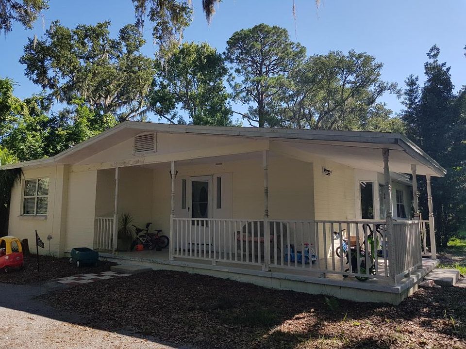 If it is land you are looking for this is the place for you. This cozy home sits on an almost 2 acre fenced parcel in the heart of the city of South Daytona. Adjacent to the home, there is an oversized 3 car garage with storage above accessible by an outside stair case. This is the property where family memories are made. The house is accessible from a private driveway. Welcoming front porch takes you to an open floor plan living room with redone hardwood floor throughout. Kitchen has Corian countertops and white cabinets. It is priced for the land value. Come see it and imagine the great potential it is offering. More details and photos coming soon. all information is believed to be correct but not guaranteed; measurements approximate