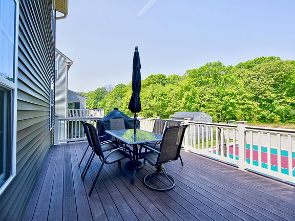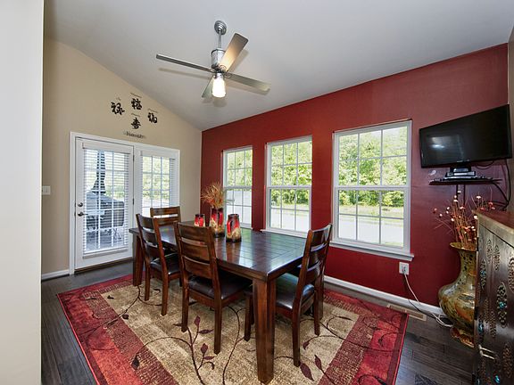 Stunning upgrades in this Norman Creek colonial! Dream kitchen offers a traditional feel with a modern flair - dark cabinetry, a pantry with custom roll out shelves, granite counters, tiled back splash, upgraded stainless steel appliance package with two ovens, and an extended island perfect for up to 6 stools. Drop zone off the kitchen. Morning room with vaulted ceilings. Main level office with Palladium window. Family room offers a gas fireplace and a clear site line to the kitchen. Huge master suite has tray ceilings with rope lighting, two walk-in closets, and an en suite with dual vanity with granite, custom tile work, jetted tub, and separate walk-in shower. Convenient upper level laundry with nook for additional shelving. Finished walk-out lower level with spacious recreation room, complete with a wet bar with wine/beer fridge, wine racks, and glass front cabinets to display your glassware, liquor, sports memorabilia, etc. The lower level also offers a full bath with more custom tile work, and two storage rooms. And it doesn't stop with the interior- step outside and enjoy the largest lot in the community with tons of high end upgrades! Enjoy your very own professional sports court, paver patio with sitting wall, composite deck, vinyl fence, shed, spacious grassy area for more outdoor fun, all while overlooking pretty and peaceful views of the woods. New walking trails are in the process of being installed by the community in the woods behind the home for added outdoor enjoyment!Additional features include vaulted ceilings, 9 ft ceilings, 6" wide plank hardwood floors throughout main level, California Closet organization system with custom purse and shoe shelves, two panel doors, french doors, recessed lighting, tray ceilings, stone front exterior, professionally designed landscape, carriage style garage doors. Water treatment system negotiable. This home checks off all the boxes plus more!
