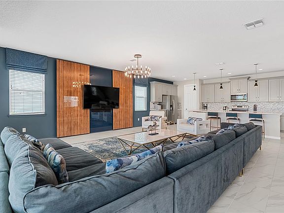 Welcome to your next lucrative investment, dream vacation home, or spacious primary residence at the phenomenal 1628 Nassau Point Trail, located within the highly sought-after Solara Resort. This magnificent, fully furnished property boasts an incredible 9 bedrooms and 6.5 bathrooms, offering unparalleled space and privacy for large families or high-demand short-term rental groups. Step into a world of dedicated entertainment with a private, screened-in pool and spa, unique themed bedrooms to delight all ages, a dedicated loft/game area for competitive fun, and a separate, private theater room for epic movie nights! This home is a turnkey masterpiece designed for maximum enjoyment and income potential. Beyond your private retreat, Solara Resort offers an 18-acre amenity complex that transforms every day into a vacation. Dive into the excitement with the FlowRider® surf simulator, relax at the resort-style grand pool, or enjoy the splash pad, tiki bar, and on-site dining at the Solstice Bar & Grille. Active residents and guests will love the fitness center, basketball court, beach volleyball court, and soccer field within this secure, gated community. With a prime location just minutes from Central Florida's world-famous attractions, including Disney World, and endless dining and shopping options, 1628 Nassau Point Trail delivers the perfect blend of luxury, leisure, and location for any discerning buyer. Producing an average of almost $110,000 in rental revenue every year since 2021 with Villatel.