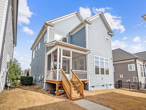 Live in the heart of Wake Forest in this freshly painted Holding Village home. This 4 bedroom, 3 bath home is very livable and you will love the open layout, kitchen farm sink, oversized pantry, laundry room sink, primary shower w/ upgraded pebble floor, front porch swing, blinds throughout, central vac and screened porch. There are multiple neighborhood entries/exits for easy access to Main Street & Hwy 98. This welcoming community offers trails, a neighborhood pool, multiple pocket parks including one directly in front of the home offering a tire swing and balance beam for fun year-round. Washer/Dryer, surround sound speakers convey. Solar panels installed.