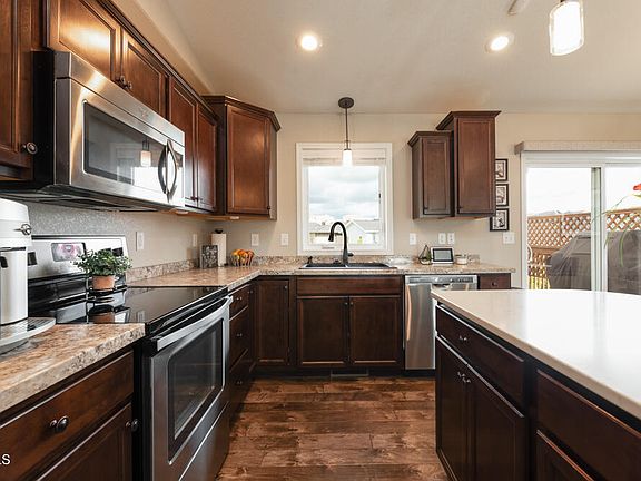 Here's your chance to own a home, only a few blocks from Ft Lincoln Elementary School, with great natural light and cutting-edge Smart Home technology such as Smart thermostat, Smart sprinklers and wired in security system, giving you great peace of mind when you're away! As you step inside you are greeted with a spacious open layout that seamlessly connects your living room, dining room and kitchen, creating a wonderful gathering space. The kitchen has gorgeous Birch cabinets, stainless appliances, granite sink, touchless faucet and a quartz countertop on the island, giving this room an elegant feel. Just a few steps from the counter you have TWO pantries! This level of the home also boasts a bathroom, bedroom and primary ensuite.