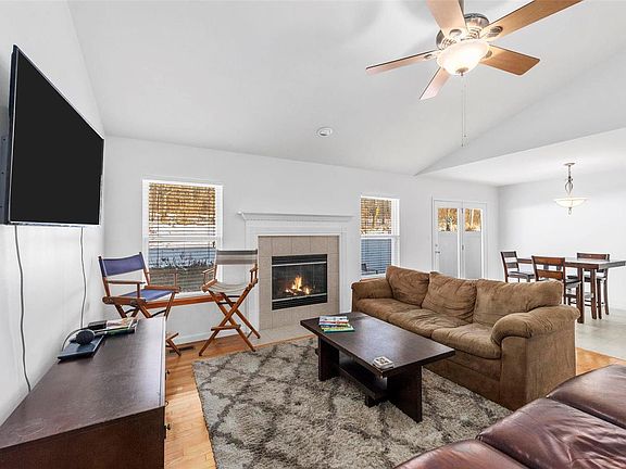 Welcome to this charming villa located in the sought after Bear Creek subdivision! This 2 bed, 2 bath home welcomes you with plenty of natural light, hardwood floors and vaulted ceilings! Cozy up near the gas fireplace or open your entertainment to the eat in kitchen attached to your private patio that backs to trees. Main floor laundry and primary en-suite round out the main floor. Spacious basement has a rough in for a bathroom and plenty of storage! Come check out this great villa and all the amenities that Bear Creek living has to offer! Location: End Unit