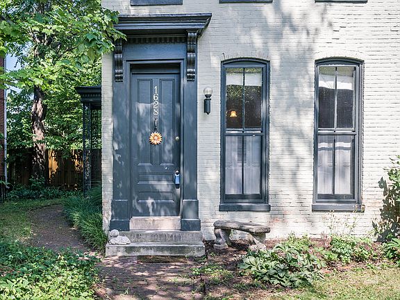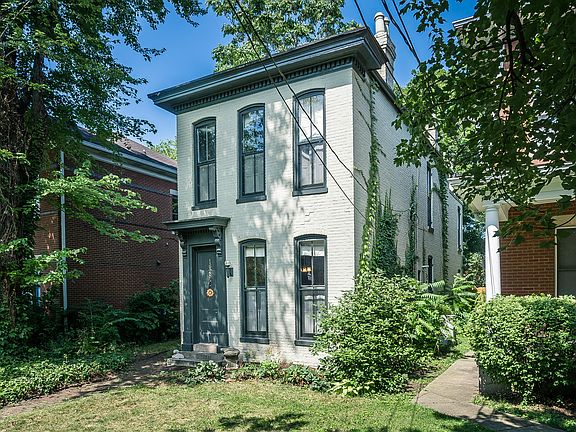 Transport yourself into yesteryear in this stately home in Old Louisville. Overflowing with Old Louisville charm, you can also enjoy the comforts of modern conveniences. Ten-foot ceilings and red pine floors run throughout most of the home. Relax in the spacious living room with a handsome fireplace as the centerpiece along with floor to ceiling windows allowing in an abundance of natural light. There is an updated kitchen with a full complement of stainless appliances, custom cabinetry, and granite countertops. Preparing meals is a breeze with the prep island work area. The perfect place to host holiday dinners with family and friends and just off the kitchen is the formal dining room with tray ceiling and ceiling fan with light. Enjoy the convenience of the main level laundry. A full bath rounds out the main level. The second level is home to two bedrooms, both with fireplaces. There is also a full bath off one of the bedrooms. A serene gated courtyard welcomes you to the backyard. Here you will discover a brick walkway, bricked eating area, mature plantings, covered entry into the backdoor, garden area, and separate storage building. There is even a separate covered side entrance with a charming brick walkway. You also have the advantage of six additional off-street parking spaces behind the house. A fantastic place to call home and quiet, but close to all downtown amenities as well as Central Park, Speed Art Museum, and University of Louisville campus.