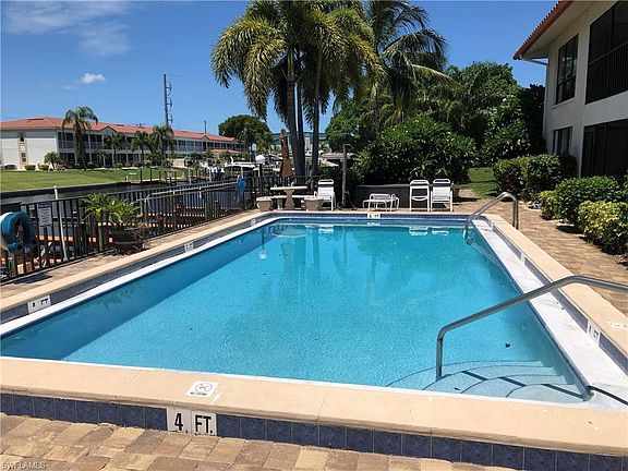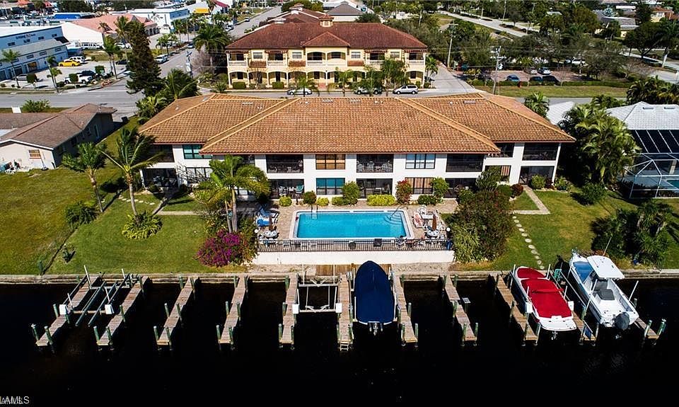 Great Opportunity Awaits. Freshly painted inside & Luxury Vinyl Flooring. Check out this 2 Bedroom 2 Bath Direct Gulf Access Condo with Deeded Dock & Lift is just minutes to the Caloosahatchee River with Southern Exposure & Water Views of the Canal and Pool. This Furnished Condo offers over 1300 square feet of living area. A Large kitchen with solid surface counter tops and eating bar. The Flex Space gives you options for a second living area or office. The Master Bedroom has Sliders to the Lanai and an updated Master Bath with his and hers closets. The A/C Unit is New with Nest Thermostat. This is a well established, well maintained community with great amenities including a heated pool. You are also close to downtown Cape Coral with great restaurants and shopping.