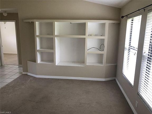 This 3 bedroom 2 bathroom single family home has and open feeling walking into the living room, kitchen and dining area. The living room has built in shelving in the wall as well as in the dining area. The kitchen has an island with counter top height seating. The back lanai was closed in for additional living space and there is a laundry room with washer and dryer hook up.