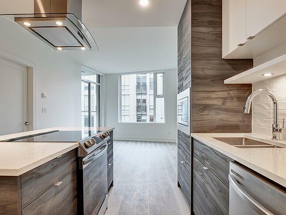 LOCATION LOCATION LOCATION! Brand new condo in The Pearl residences. It is an exceptional water front urban residence in downtown Victoria! This steel and concrete building is designed by renowned architect D'Ambrosio and interiors by award winning Kimberly Williams, constructed by the Farmers construction ltd. Step into a world of modern elegance in this bright 1 bed 1 bath 600 plus sqft unit with 9ft ceiling. WATER VIEWS from the living room and the balcony. Unit comes with an efficient heat pump system for heating and cooling. Great layout and kitchen with high end cabinetry and appliances, soft close drawers, quartz counters and much more. Prime location featuring a walk score of 99. Walk to renowned restaurants, & shopping options. This development offers secure underground parking, bike storage, dedicated storage lockers, a gym and kitchen equipped amenity room for entertaining. Floor plans by Realfoto. A must see!