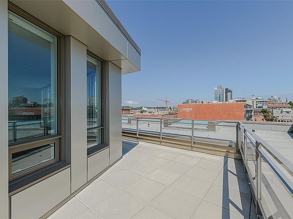 Welcome to the Pearl Residences, a premier boutique style waterfront steel & concrete building located in the heart of Victoria's vibrant & historic Old Town district. This South East facing 2 bed 2 bath penthouse features 2 balconies with views of the Upper Harbour and Johnson St Bridge. Offering 1,018 fin sq ft with 9 ft ceilings, a contemporary kitchen with a light colour scheme, high-end S/S appliance package, quartz countertops, pantry, beverage fridge, separate laundry room with sink, extra storage, heat pumps for heating & cooling, and radiant floor heating in the bathrooms. The primary suite features an ensuite bath with dual sinks, bathtub, separate shower and large walk-in closet. With side by side parking for two, storage, bike storage, a fitness facility, kitchen equipped amenity room and pets allowed, this unit will have you ready to live the ultimate luxury downtown urban lifestyle! GST INCLUDED IN PRICE.