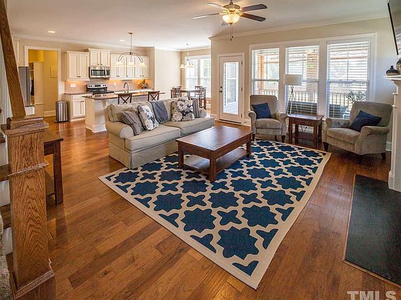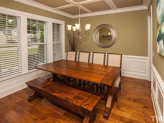 Pristine move in ready home loaded with stunning finishes. Kitchen has under cab lights, granite, SS, tile backsplash and huge island. Great pantry. Wide-plank hand scraped wood floor throughout main floor. Sep. dining room with coffered ceiling. Huge master bed w/ WI closet. Master bath has dual vanity, sep. tub & tile shower, water closet. 2nd floor laundry room. Tile floors & marble vanity tops in all baths. Unfinished walkup attic with rough-in plumbing for 2 piece bath. Convenient to Fuquay-Varina.