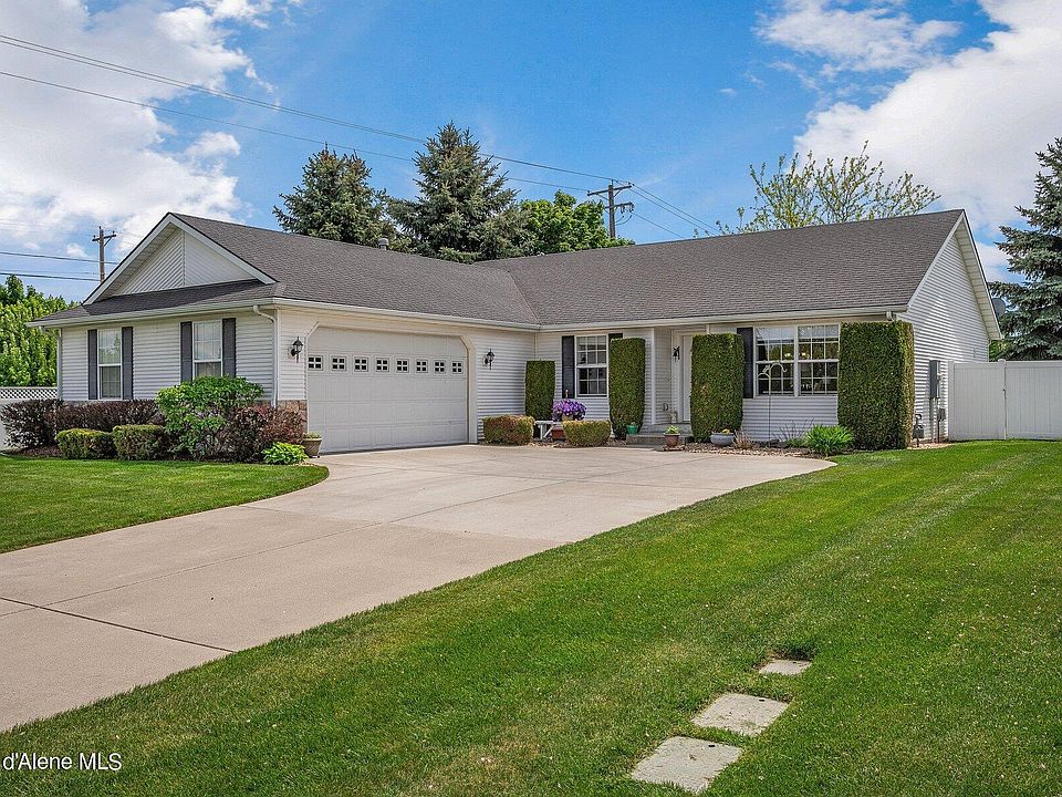 Adorable Rancher in Hayden includes a 3 bedroom, 2 bath, home situated on almost 1/3 of an acre on a corner lot . It has an oversized two car garage, and a fully fenced back yard with a sprinkler system. Enjoy your BBQ on the covered patio, great for entertaining. This home offers a large kitchen with a walk in pantry, vaulted ceiling. The master suite has a walk-in closet and walk-in shower. Centrally located makes this a perfect home close to shopping and Hayden Lake.