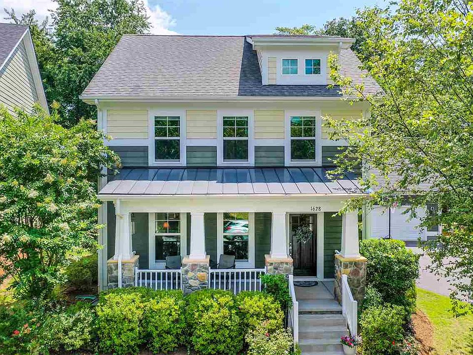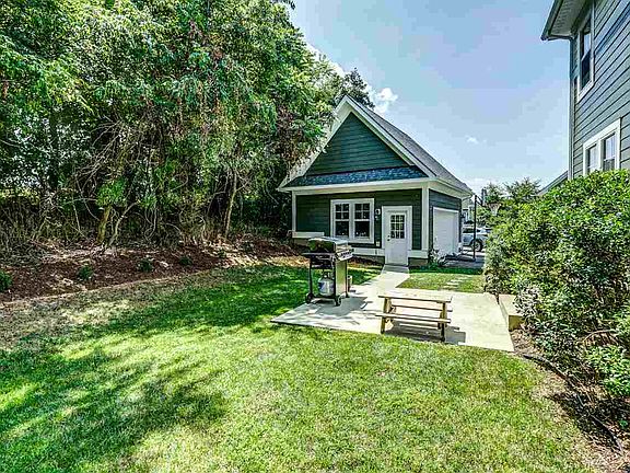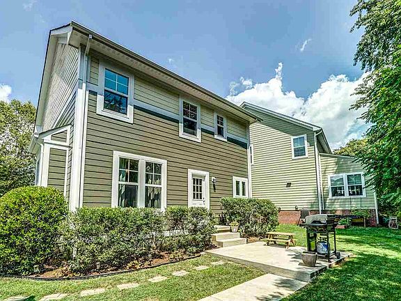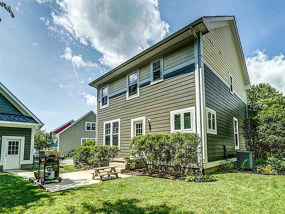 Cheery home in friendly neighborhood directly across from neighborhood common area! This home is freshly painted inside with crown moulding on the first floor and hardwood floors in the foyer, kitchen, dining and powder rooms. Kitchen with large island with bar is great for breakfast or entertaining, features wood cabinets with stone tile backsplash, coffee station with wood countertop and storage area, new dishwasher and refrigerator too! Upstairs is the owner's suite with private bathroom with dual vanities and ceramic tile flooring, two additional bedrooms, a full bathroom, and laundry room with storage too. Enjoy the shady stone front porch or grilling on the back patio. The detached 2-car garage offers lots of storage!