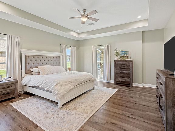 Stop searching—this BEAUTIFUL home truly checks every box! Custom-built with 4 bedrooms and 2 baths, this gem in the sought-after Harper’s Ranch subdivision sits on nearly one acre with a fully fenced yard, offering plenty of space inside and out! From the moment you walk in, you’ll be drawn to the cathedral cypress wood ceilings and impressive built-ins in the living area. The kitchen features stainless steel appliances, a gas stove, granite countertops, custom cabinetry, recessed lighting, a matching cypress ceiling, and a pantry. The open split floor plan places the spacious master suite on one end, complete with a tray ceiling, large master bath, dual sinks, a soaking tub, and a separate shower. On the other side, you’ll find three generously sized bedrooms and a full bathroom with dual sinks. Step outside to relax on the covered patio overlooking your property, or take advantage of the 30x40 metal shop with electricity—perfect for hobbies, storage, or work. This home truly has it all, and opportunities in Harper’s Ranch don’t last long. Flood Zone X, so flood insurance isn't typically required. All measurements are M/L. Call today to schedule your private showing before it’s gone!