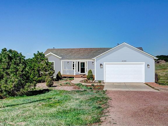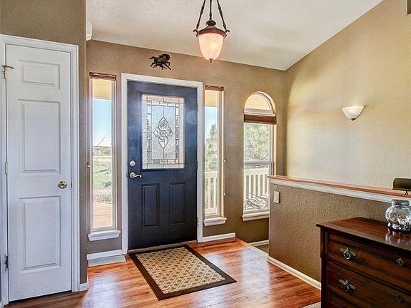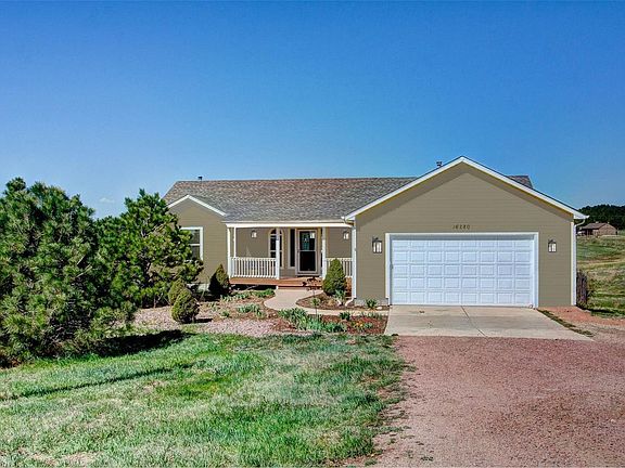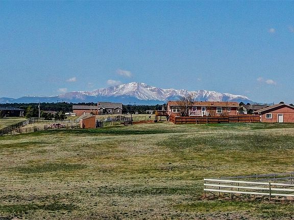 Well maintained ranch floorplan home located on a culdesac and over 5 acres of horse property in the Woodlake neighborhood. All world views of the mountains and Pikes Peak from almost every room in the house not to mention from the oversized full length deck and patio areas. Great room has vaulted ceilings, fireplace and walk out to the deck. Kitchen is large and welcoming with a big dining nook and plenty of room to entertain. Master bedroom walks out to the deck and hot tub area.