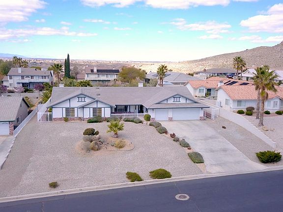 APPLE VALLEY RIDGE ESTATES -SEE VIRTUAL TOUR AND AREA DRONE PICTURES. A gated VIEW Community of upscale custom homes. This beautiful POOL/SPA Home is positioned on the lot so you can appreciate spectacular desert sunsets and mountain VIEWS. A delightful master bedroom suite with fireplace and sitting area is set apart from oversized secondary bedrooms that have custom closets. Master Bath features a separate jetted bathtub, shower and dual sinks, walk-in closet with custom shelves. The kitchen, with walk in pantry and garden window overlooks the pool area and is open to the family room with fireplace and custom shelving. There is an additional huge bonus room that offers more space for formal and information entertaining. The best part of this charming home is the beautiful backyard, mature landscaping POOL and spa, extended covered patio and sitting areas that have VIEWS OF THE VALLEY! Some Extras include ceiling fans throughout and storage. This home is situated within a short distance to shopping, major hospitals, entertainment and the I-15!