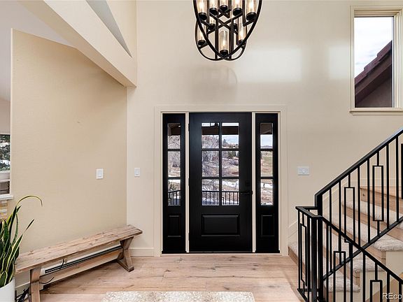 Stunning custom home perched above the tee box of the signature 16th hole of Red Rocks Golf Course in the desirable foothill's community of Willow Springs. Enjoy the gorgeous mountain, golf course and downtown views! Completely renovated with high-end, custom features throughout! Beautiful and timeless finishes with unparalleled quality. The impressive entry has custom iron railings and beautiful wide-plank French White Oak flooring. The 2-story great room has a new gas fireplace, stacked stone and large windows to appreciate the views. The gourmet kitchen designed by an award-winning designer was completely renovated in 2021 with high-end Leathered Quartzite countertops and backsplash, all new custom cabinets, oversized Sub-Zero refrigerator and 48" Wolf gas range with griddle. The main floor was restructured in 2021 to create an open concept flooplan. The dining room has a wall of sliding doors leading to the outdoor living space and wildlife! All bathrooms are remodeled, new lighting throughout and new Pella windows and exterior doors. Enjoy the new spacious primary bedroom with viewing deck and vaulted ceilings. The luxurious primary bathroom was totally remodeled in 2024 with radiant heated floors, oversized walk-in shower, high-end standalone tub, designer tile, floating dual vanities and amazing golf course and downtown views! Just completed walk-in custom closet. The finished lower level is perfect for entertaining with chic epoxy cement floors, bedroom or exercise and bonus room plus ¾ remodeled bathroom. Situated in a private setting with red rocks outcroppings, plenty of wildlife and a short golf cart ride to Red Rocks Country Club with golf, pool and first-class restaurant. 800+ acres of open space, hiking and biking trails for the private use of the residents. The listing will go active and showings will begin on Wednesday 31st.