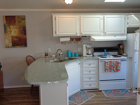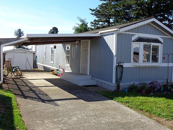 A Pleasant and Quiet space to call your own. 2 Bd, 1 Bth, Built 1994, 784 Sq.ft Clean and neat Kitchen w/bar, white cabinetry. New laminate flooring throughout. Laundry area plus W/D, double pained windows, Mstr Bd rm with sliding doors to a deck. Lawn, Covered Carport- 2 car parking space, plus tool shed. Less than 1 mile to the Harbor. Monthly space lease $325, +55 park. Manager approval.