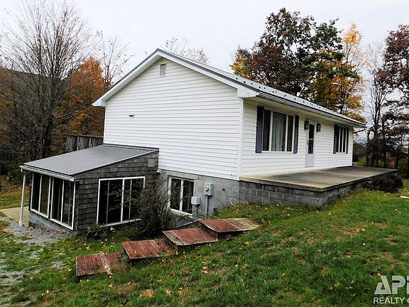 Charming ranch w/finished basement on mostly wooded 4.61 AC in Blacklog Valley. Beautiful view of valley and trout stream from deck. 2 bedroom, full bath, kitchen, LR, DR on 1st flr. Family rm, kitchen 3/4 bath on lower level. 3 season rm, concrete patio. Detached barn w/heated wood shop, carport, & shed. New metal house roof in 2020.