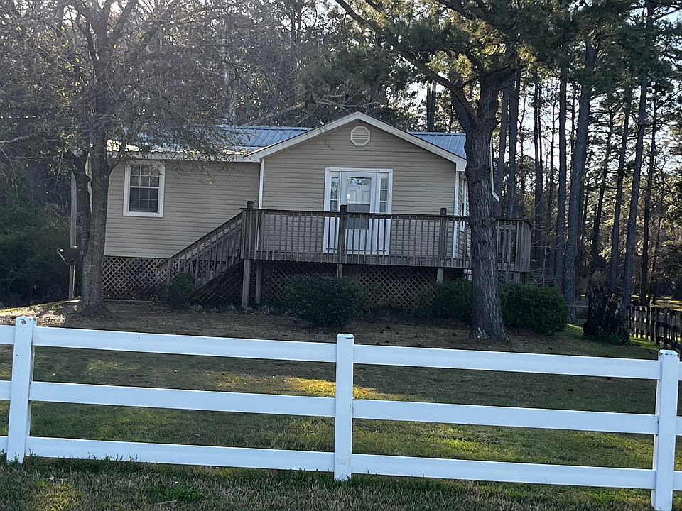 Cute cottage style home across the road from Fish River. The porch on the home gives you a beautiful sight of Fish River and the woods that surround the home. You have the serenity of country living with the convenience of being close to Fairhope, Foley and Gulf Shores. The home is Just down the road from Big Daddy's Restaurant off of Hwy 32 on the Fairhope side of Fish River. The home has 3 bedrooms, 2 full bathroom, open kitchen and living room. Both bathrooms have a tub with shower. Flooring is wooden laminate thru out the home and both bathrooms and kitchen have tile flooring. The washer and dryer connections are right off the kitchen. There are plenty of cabinets and storage space in this home. The appliances include an electric stove, microwave, dishwasher and is central H/AC. IT DOESN'T COME WITH A REFRIGERATOR. There is a nice a wooden porch across the front and one side of the home. You can enjoy the scenery around this home. Fish River and country living. It has a nice yard and storage under the home. City of Fairhope water, EMC for electricity and Solid Waste Disposal Authority for garbage pickup. It is a quiet neighborhood and has a country style of living. The rent is $1,800.00/month with a deposit of $1,800.00. Renter will pay a one time renter's application fee. Non-refundable Optional if 1 pet meets requirement. $200.00 Non-refundable Renter pays all utilities deposit to companies. 'Renter's will pay all repairs if more than deposit. Lease will be at least a 1 year. NO smoking in the home or within 50' on home.