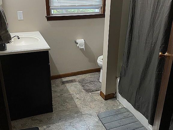 Furnace and A/C new 2 yrs - new paint, carpet & bath floor 2020 - water heater approx 6 yrs old - roof approx. 12 yrs old - dishwasher is brand new - water softener owned. Third bedroom doesn't have closet. Garage is a basement garage. A portion of the pond is allocated to each house on the pond. Sewer is Jet Aeration