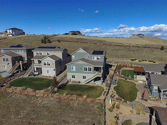 Extensively upgraded 2-story Candelas home backing to plentiful open space, just steps from community park! With no one in front or behind you but open area, covered deck & walk-out basement allowing for an expansive open feeling to enjoy the mountain and city views! Main level features a dining room, great room w/fireplace, powder room & guest suite w/en-suite 3/4 bath & living/office space. Gourmet eat-in kitchen boasts SS applncs, granite counters, island w/brkfst bar, backsplash, & access to the extended covered deck. Upper level loft, 2 addtnl beds, full bath, laundry & master bedroom w/walk-in closet & private 4pc bath. Unfinished walk-out basement w/9' ceilings & rough-in plumbing& backing to open space! Speaker system throughout, upgraded carpet, radon mitigation system, hail resistant roof & mud room w/lockers. Great location near trails & just blocks from Maverick Mesa Park, Cimarron Park & 2 pools incl Candelas Swim & Fitness Club.