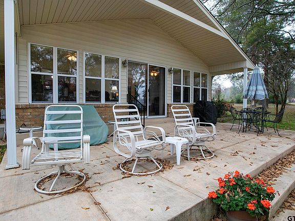 A RARE FIND FOR WATERFRONT HOME ON LK. TYLER FOR THIS PRICE! SELLERS PRICED TO SELL! LOCATED IN RESTRICTED SUB., THIS HOME HAS WALL OF WINDOWS TO TAKE FULL ADVANTAGE OF THE OPEN, EXPANSIVE WATERFRONT LOT W/GENTLE SLOPE TO LAKE. INCLUDES LGE INSULATED SHOP/EXTRA GARAGE W/ELECTRICITY, 18' OVERHEAD DOOR, WINDOW UNIT HEAT & AIR & VINYL SIDING EXTERIOR FOR EASY MAINTENANCE. 2-STALL BOATHOUSE W/STORAGE RM & ELECTRIC LIFTS; RETAINING WALL ACROSS WIDE WATER FRONTAGE. LGE OPEN FAMILY & DINING ROOMS OPEN TO KITCHEN & SUNROOM; GREAT OPEN FLOW FOR ENTERTAINING OR JUST ENJOYING THE GOOD LIFE OF LAKE LIVING! KITCHEN HAS BEEN REMODELED W/CUSTOM CABINETS, PULL-OUT SHELVES, LGE CUSTOM PANTRY & STAINLESS STEEL APPLIANCES. WOOD-BURNING FP W/INSERT KEEPS YOU WARM & COZY ON COLD WINTER DAYS. ROOF, CH&A, WH, WINDOWS & AEROBIC SEPTIC SYSTEM HAVE BEEN REPLACED WITHIN THE LAST FEW YEARS. DON'T MISS OUT ON THIS GREAT WATERFRONT HOME & "ENJOY THE VIEWS & WAKING UP TO THE GOOD LIFE ON THE LAKE" BUT STILL CONVENIENT TO TYLER SHOPPING & MEDICAL FACILITIES. SELLER OFFERING 1-YR HOME SERVICE CONTRACT TO BUYER. SQ FT. APPROX., BUYER TO SATISFY SELF. HOA DUES ARE ONLY $100 YR, GIVING HOMEOWNERS ACCESS TO PRIVATE BOAT RAMP, FISHING PIER & EMERGENCY HELI-PAD.