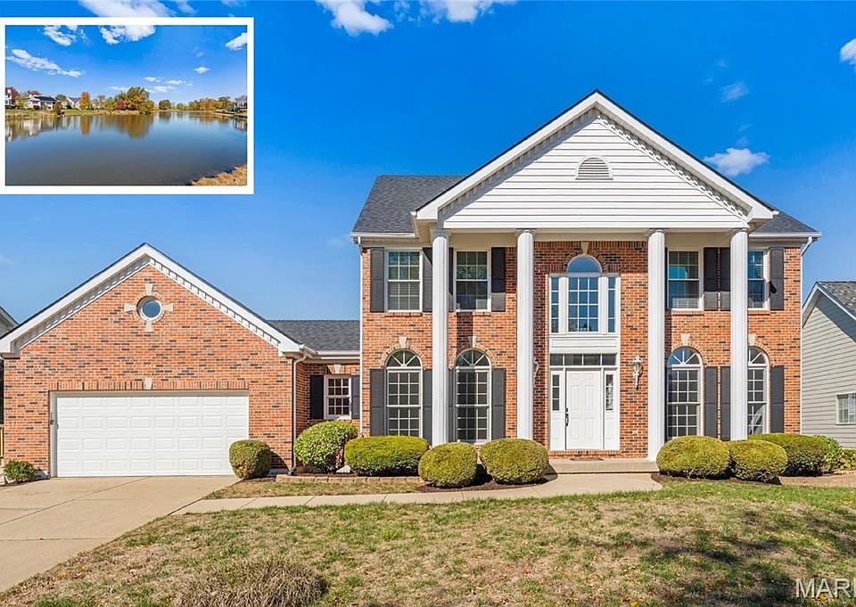 Nestled on a premier waterfront lot in the esteemed Orchards Subdivision and within the highly rated Mascoutah School Dist. this stately 2-story home offers timeless curb appeal, serene water views and NEW ROOF! Featuring 4 beds, 4 baths, 2 car garage and finished walkout basement, this meticulously maintained home combines comfort, style, and VALUE! With 9ft ceilings throughout main level, the welcoming 2 story entry is flanked by a formal dining room and a formal sitting area, leading to a spacious living room with a gas fireplace and bay windows overlooking the serene water views. The well lit eat-in kitchen features multiple pantries, stationary desk, center island and direct access to the NEW DECK—perfect for entertaining or peaceful evenings overlooking the water! A powder room and dedicated laundry room complete the main level. Upstairs, the primary suite impresses with French door entry, bay windows to enjoy the view, and a spa-inspired en-suite w/ soaking tub, separate shower, dual vanities and oversized walk-in closet. Two additional guest bedrooms and a full guest bath complete the upper level.