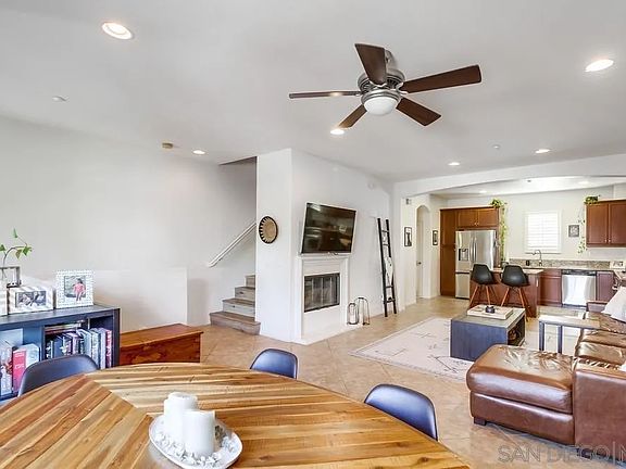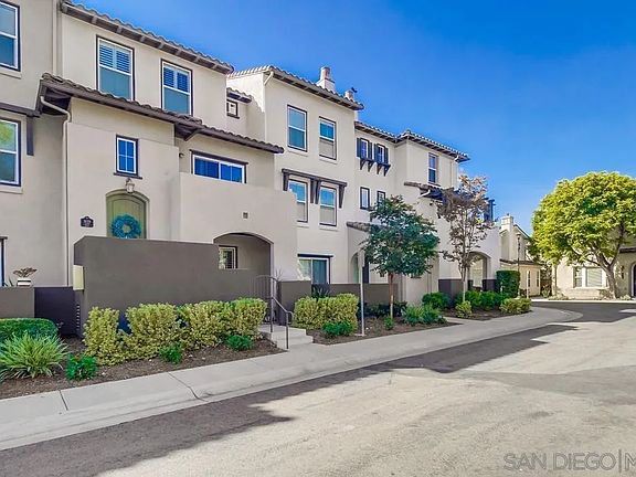 One of the most sought-after models in Winding Walk: a 3-bedroom, 3.5-bath townhome adjacent to guest parking, a playground, park, and community pools. Located just steps from Camarena Elementary, rated one of the top two elementary schools in Chula Vista by US News. FHA and VA approved! One bedroom with a full bath is located on the first floor, with two additional bedrooms and two baths upstairs. The main living/entry level includes a half bath and a laundry room. An open-concept living area flows into the kitchen, which features granite counters and stainless steel appliances. The garage includes EV charging and ample storage.