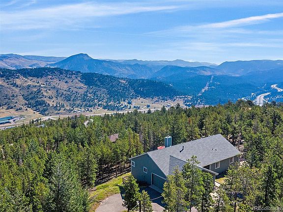 You'll be on top of the world here with views, great cell service, easy access to Denver, Evergreen or the mountains for skiing. Abundant natural sunlight throughout the year will remind you why you live in Colorado. The Seller has been on top of maintenance...the furnace was serviced July 2020, the well pump was replaced in 2013 and a new roof was installed in 2019!! Relax on the upper level spacious deck with views of the mountains, enjoy the lower level expansive deck or choose the lower level beautiful flagstone patio to unwind. Everything you need is on the main level with easy access to entertaining space and bedrooms. The lower level is a bonus with a huge family room and one non-conforming bedroom. Originally designed to be handicap accessible, the house still has an elevator (see notes on conversion), handicap accessible door handles, lower bathroom countertop heights, wide hallways and easily accessible light switches. The 3 car garage plus an outside RV parking spot will provide you plenty of space to store your vehicles, bikes and skis and the southwest facing driveway has great solar exposure. Hike, bike and play tennis at the Clear Creek Park and Floyd Hill Open Space. Rise Broad band provides great wifi services and an antennae allows the Seller to stream over 40 cable channels. The house is wired for a generator and plumbed for a hot tub. This is an amazing lot with plenty of level area and beautiful rock outcroppings, plus the play set is included.