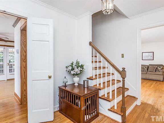Private, park like setting located on a culdesac street! Recently updated with granite in the kitchen and baths. New carpet in family room & new paint throughout. Beautiful hardwoods in secondary bedrooms, two with their own large, walk in closet. Attached 1 car garage. Detached 2 car garage with ample storage above. Septic is 4 bedroom, but there is a 5th potential bedroom in the basement, adjacent to full, wheelchair accessible bath. Gutter guards. N'brhood lake w/dock and fish. Walk to Falls Lake!