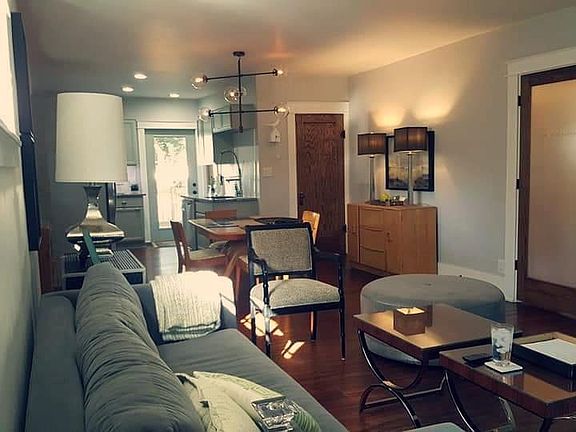 A cute completely remodeled bungalow home in the '05! Hardwood floors in kitchen, dining and living room. Carpeted bedrooms. Contemporary bath with glass, walk-in shower and kitchen with stainless steel gas stove/oven, side by side fridge and dishwasher. Garbage disposal. Clothes washer & dryer. 1 car garage. Beautifully landscaped yard with a fenced courtyard containing a pond and fire pit. Steps to Lakeside Park and the River Greenway with a short bike ride to downtown. This spotless home is waiting for the right tenant. Owner maintains lawn.