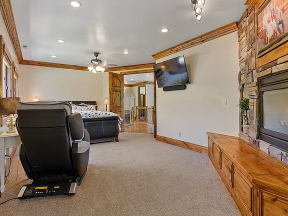 Nestled in the highly sought after neighborhood in Springville River Bottoms. Custom home with a classic look. Each of the 4 bedrooms on upper floor have their own private bathroom. All closets walk-ins, two in master. Waterfall shower and separate jetted tub with two-way fireplace in spacious master suite. Tankless hot water heater. Whole house humidifier. Huge stamped concrete patio, 100 gallon fish tank, theater room, huge pantry, walk up basement, fully fenced, RV parking, shed. A Must See!
