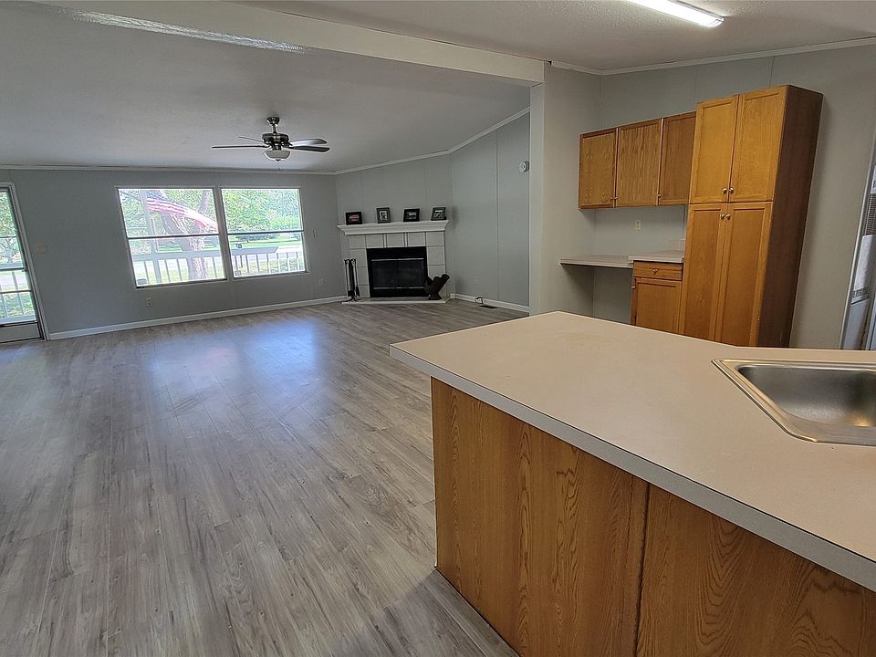 The home features a new roof, new paint and floors throughout, new Carrier heat and AC unit with 10 year warranty and a new 50 gallon water heater. There is plenty of kitchen storage with lots of cabinets and shelving down the hallway.
