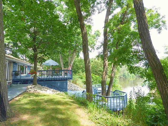 AMAZING RIVER VIEWS OVERLOOKING MONKEY ISLAND & EBERHART GOLF COURSE IN PENN SCHOOLS! BOAT DOCK WITH A 1350 SQ FOOT UPPER DECK! ****254 FOOT RIVER FRONTAGE****BEAUTIFULLY MAINTAINED INDIANA LIMESTONE RANCH FEATURES SPACIOUS EAT-IN KITCHEN WITH VAULTED CEILING & SKYLIGHT! THE HEART OF THIS LOVELY HOME IS THE KITCHEN AND IT IS LOADED WITH STORAGE, COUNTER SPACE PLUS HUGE PANTRY AND APPLIANCES. OVERSIZED GREAT ROOM WITH COZY FIREPLACE AND LARGE WINDOW WALL TO ENJOY THE SPECTACULAR VIEWS! MASTER SUITE WITH FULL, PRIVATE BATH. FAMILY/SUN ROOM IS THE PERFECT SPOT TO VACATION AT HOME! FINISHED LOWER LEVEL WALK-OUT FEATURES MORE LIVING SPACE WITH 2ND FIREPLACE, FAMILY ROOM, FULL BATH & LAUNDRY - THE LOWER LEVEL OFFERS GREAT FLEX SPACE AND COULD MAKE A GREAT "IN-LAW" QUARTERS WITH FULL BATH ON LOWER LEVEL. ENJOY STARRY NIGHTS WITH YOUR FAVORITE BEVERAGE OVERLOOKING THE ST JOSEPH RIVER - DON'T MISS THIS OPPORTUNITY TO PURCHASE THIS RARE, ONE OF A KIND VIEW PROPERTY!