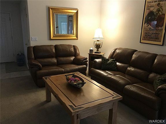 Mountain Views!! Watch the AVI casino fireworks from your private covered patio. In this Homes Only area this property comes FURNISHED with 3 bedroom, 2 bath with vaulted ceiling, beautiful tile in entry, plant shelves, breakfast bar, casual dining, covered patio and 2 car garage.