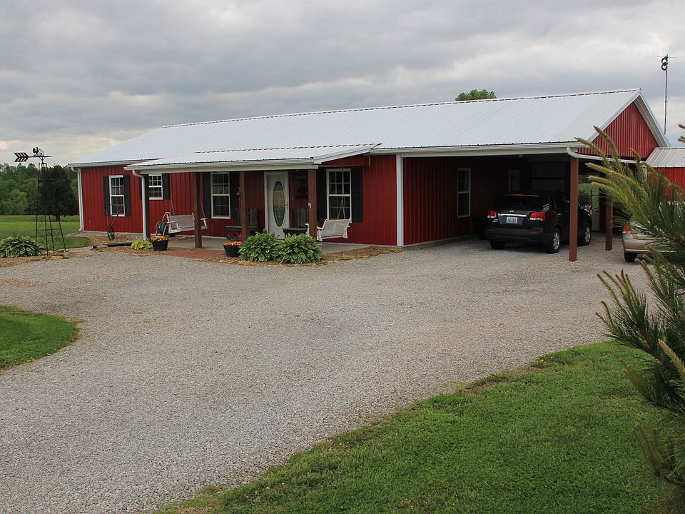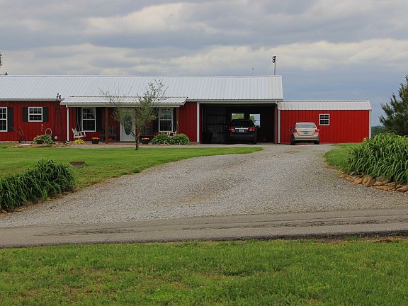 Beautiful inside and out! 3 bedrooms, 1 bath, dining room, dream kitchen, wide hallway, living room with gas fireplace, ample storage, central heat & air, covered patio, 2 carports, storage building plus a large metal building with storage and workshop, 1.44 acres. Beautiful setting near Rough River Lake, boat ramps close by!