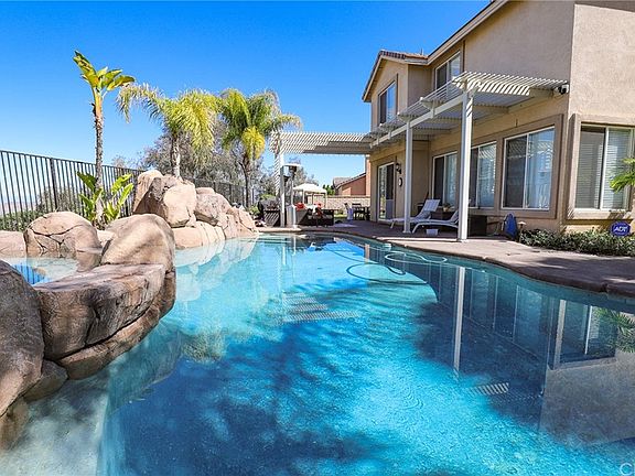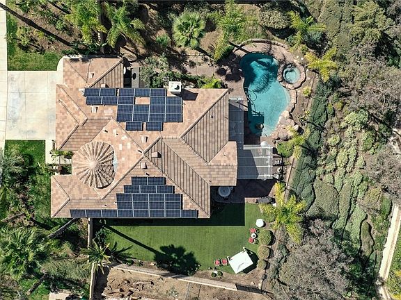 Absolutely Beautiful Eagle View Home on Premium 12,000 Sq/Ft View Lot!! Open and Bright Floor Plan with 5 Bedrooms, 4 Baths, Bonus Room & Office. 3731 Sq/Ft, Built in 2000 by Lennar Homes, Solar Powered, Private Gated Courtyard, Grand Entry with Soaring 18 Ft Ceilings, Beautiful Sweeping Staircase, Downstairs Bedroom has its own Full Bath, Tile Floors throughout Downstairs, Island Kitchen, Stained Maple Cabinets, Granite Counters, Stainless Steel Appliances, Built-In Desk, Double Oven, Cook Top Stove, Wine Rack, Breakfast Bar & Nook, Under Cabinet Lighting & Coffered Ceiling in Formal Dining Room, Upstairs has 4 Bedrooms and Huge Bonus Room. Spacious Master Suite with Retreat, Coffered Ceiling, Panoramic City Light & Mt Baldy Views, Master Bath with Dual Vanities, Separate Tub/Shower & Huge Walk-In Closet. Entertainer's Backyard Plenty of Room for many Guests, Approximately 40 Ft Rock Swimming Pool , Spa , Stamped Concrete recently resealed, Huge Side Yard with Artificial Grass and Two Alluma-Wood Patio Covers. Definitely Pride of Ownership!!!Eagle Glen is a Fantastic Golf Course Community, Walking distance to Elementary School, Parks, Tennis Court, Golf Course, Clubhouse, Schools and Shopping. Low Taxes!! Low HOA!