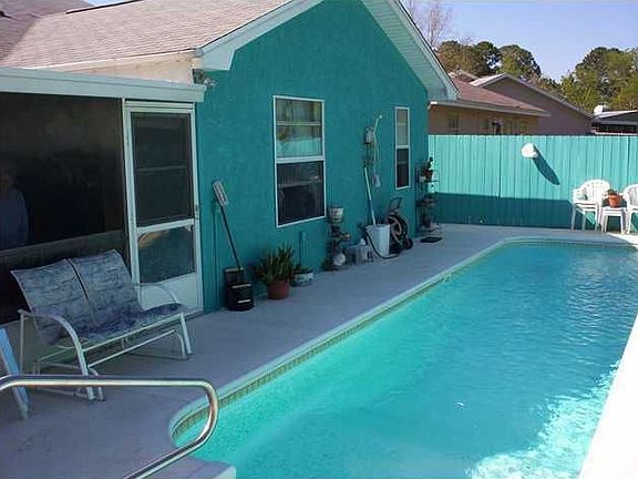 EASY to Show, this perfect Beach Home requires little or no upkeep so you can spend all your free time under the sun by your own POOL! Located in a quiet neighborhood, in the center of the East end of PCB, away from all the traffic chaos, yet with easy access to Front and Back Beach road. Have I mentioned no HOA fees? City water and sewer! Walk into a well maintained home with open floor plans, split bedrooms, chair rails and gorgeous stained concrete floors throughout the kitchen and living area. Back door provides access to an enclosed porch and a cool white concrete decking all around your own lap pool, the heated system allows you to enjoy it also during the cooler days, private fenced backyard and NO grass to mow! This home has security system and a large two car garage with pull down stairs. All dimensions, sq. footages are approximate, please verify if important.