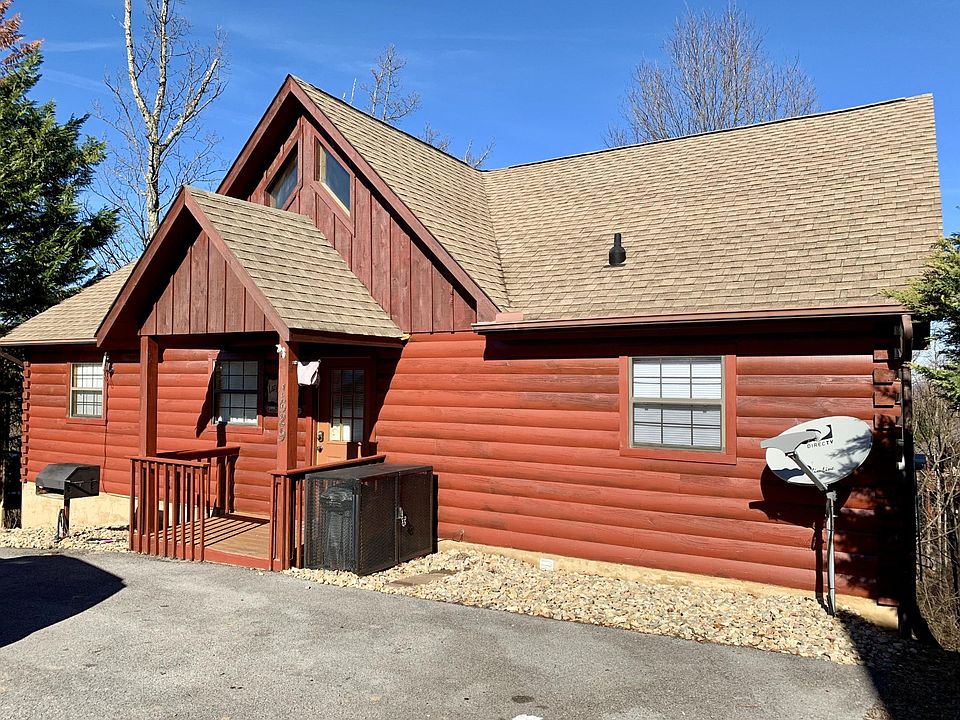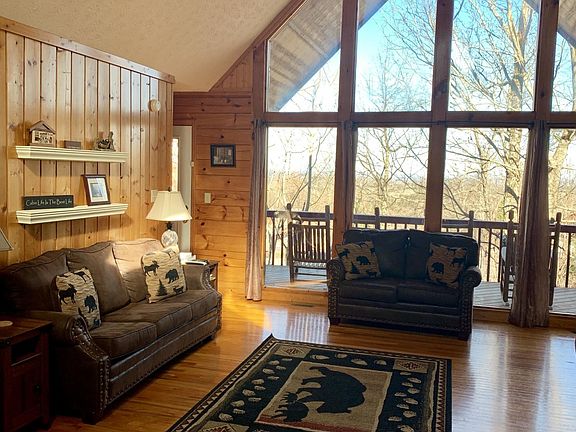 PRIME LOCATION FOR THIS SWEET LITTLE CABIN. Located 1.5 miles to Dollywood. Owners have excellent short term rental history. Cabin offers open living area & kitchen with vaulted ceilings with a wall of window for maximum views, hardwood floors in kitchen, living area and bedrooms, stack stone dual fireplace between living area and master bedroom, master offers large jacuzzi tub, 2nd bedroom is being used as game room and does not have a closet, large covered deck across the entire back of the home that is accessible from the living area and master bedroom. Large hot tub offers privacy and relaxation. Resort has a pool and a pavilion area. Excellent level parking area. Excellent location! Great Investment Opportunity! Don't miss this opportunity to own a place in the Smokies.