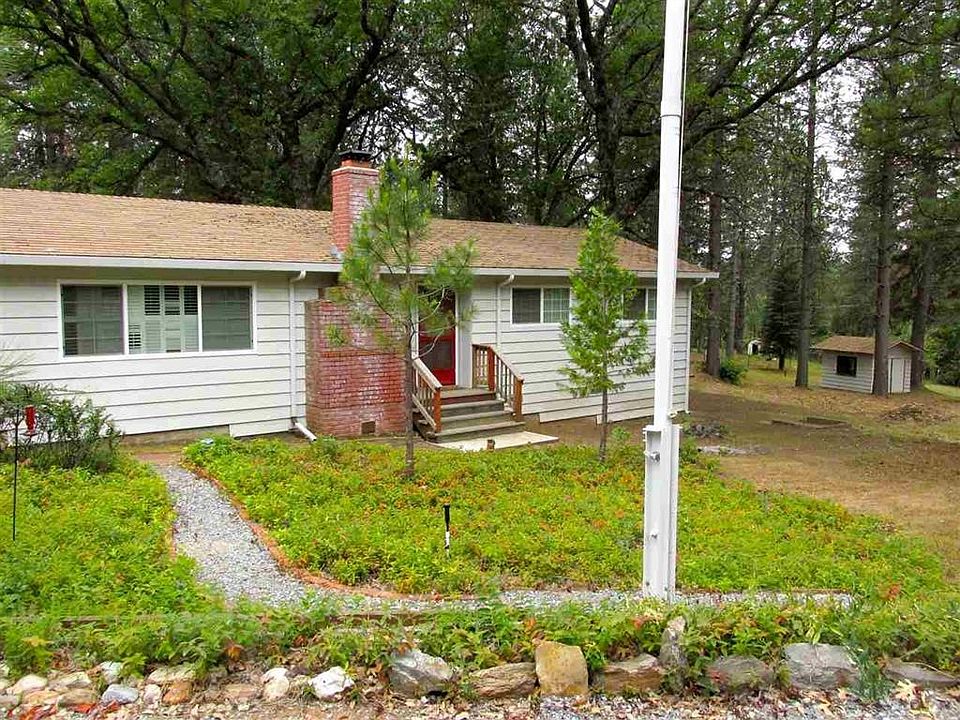 This wonderful 2 bedroom with bonus room, 1 bath, 1426 square foot, Ranch style home is set on 2.24 beautiful acres of flat land. This home features a large den/office (bonus room) which could be converted into a third bedroom, living room/dining room combination, updated eat-in kitchen, walk-in pantry, Laminate flooring, updated carpets and bathroom flooring, all newer double paned vinyl windows, and an incredible, insulated outbuilding with porch and private patio (currently designed as a Pub/game room, can accommodate additional sleeping quarters for guests or would make a great studio or office, comes fully furnished as a pub). Outside, there is a large garage with additional storage room (perfect for all your yard equipment) with an automatic garage door (system installed in 2013), outdoor shower, pump house with iron curtain water filtration system and addition storage (there is also a second well on the property with a new enclosure that built in 2013), two working wells, small orchard with apples and pears, a horse shoe pits and volleyball court. Newer central heating (Train system installed in 2012), new hot water heater and new water filtration system. Some furniture is included in sale (See Exhibit A). Outside, there is a large garage with additional storage room (perfect for all your yard equipment) with an automatic garage door (system installed in 2013), outdoor shower, pump house with iron curtain water filtration system and addition storage (there is also a second well on the property with a new enclosure that built in 2013), two working wells, small orchard with apples and pears, a horse shoe pits and volleyball court. Newer central heating (Train system installed in 2012), new hot water heater and new water filtration system. Some furniture is included in sale (See Exhibit A). Neighbor is open to selling his 1.69ac lot also if prospective buyer is interested in more acreage.
