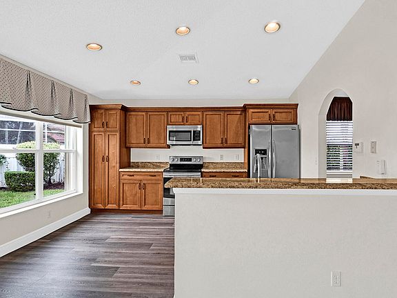 BEAUTIFUL 3/2 LAKEFRONT HOME IN GATED COMMUNITY of Lakefield North. Brand new luxury vinyl flooring throughout, interior and exterior freshly painted. Roof replaced 2020. Updated kitchen and master bathroom. Premium lot with large partially fenced yard, nice landscaping and GORGEOUS LONG VIEWS OF LAKE. Large screened patio for outdoor enjoyment. HOA maintenance includes cable and internet.