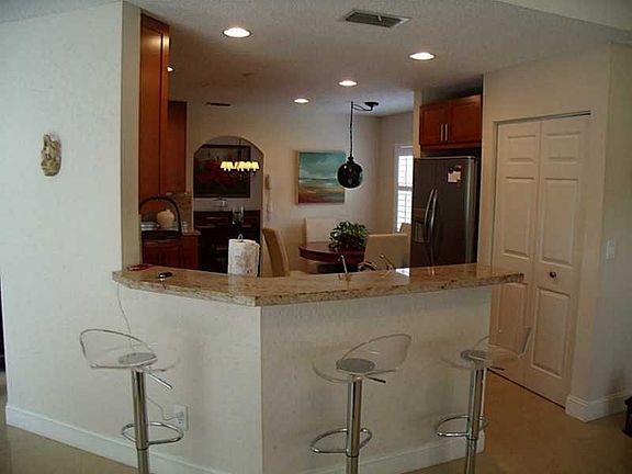 Lake front single family in Grand Palms, golf gated comm. Porcelanatto tile in social areas, open kitchen, 42" wood cabinets, granite counters tops, recess lighting, plantation shutters through out, laundry closet, arched windows and doorway, mastbath rm has roman tub and standup shower w/seamless glass, carpet in bedrms, 2 car garage w/storage cabinets and work bench, excellent school district, roving patrol, maint includes alarm, lawn, & cable, and extened patio with lake view and beautiful landscaping