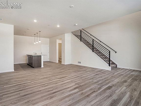 This community is in the very popular Interquest corridor. With easy access to I-25 and so many shops and restaurants within walking distance and so many more popping up, this community will be sold out soon! Take advantage while you can! Beautiful open floor plan with wrought iron railing, granite throughout, LVP on main level, gas range. The McKenna offers upper level laundry, huge walk in owner's closet, open floor plan on main level, 2 car attached garage that enters into kitchen. This home won't last!