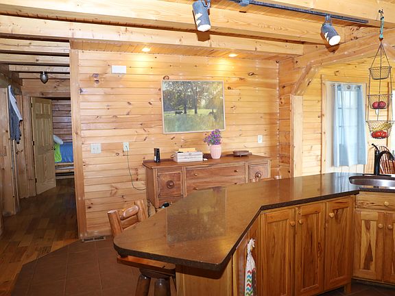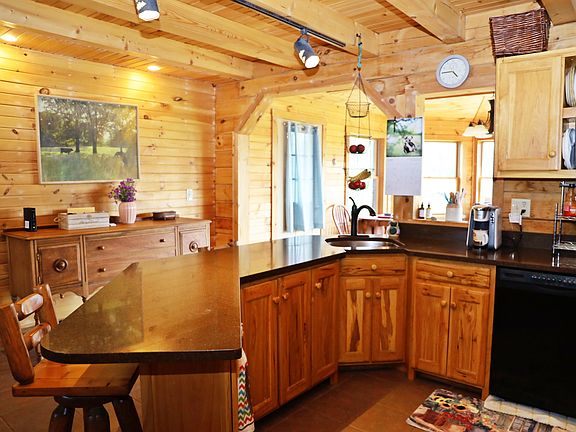 Log home on 33 acres with a stocked pond, above-ground pool and outbuilding!! Check out this spacious home featuring a living room with fireplace open to the kitchen area with island bar, formal dining room, two bedrooms on the main level plus main-level laundry. Upstairs is a loft area and bedroom suite. The large wrap-around porch overlooks the property and offers great outdoor living space. The kitchen has custom made Amish cabinetry and quartz counter tops. The unfinished basement is plumbed for a bathroom. The HVAC, leach field and exterior stain were updated in 2019. The outbuilding is 30x40' with two overhead doors. The pond is one acre and has bass, blue gill, carp and catfish. The land features 13 wooded acres abundant with wildlife (turkey, deer, ducks and pheasants) and there are 20 tillable acres; 10 acres are currently in hay. Call today!