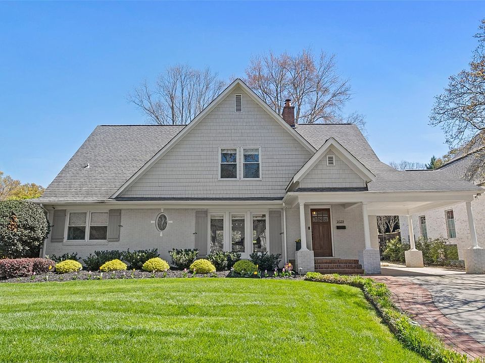 Welcome home to 1629 Sterling Road. Situated on one of Myers Park's most sought after streets, this home has everything to offer; from an open floor plan with a modern kitchen, to an idyllic backyard. Wormy chestnut cabinets and concrete countertops give the kitchen a modern feel, while floor to ceiling windows make for incredible natural light. The outdoor living is a true gem and boasts a wonderful covered porch with retractable screen, mature landscaping flanking a tiered yard, complete with turf and play area. The expansive primary bedroom features large walk-in closet and spacious primary bathroom with dual vanities and soaking tub. Downstairs features a guest bedroom and flex room as well as a large bonus room- equally perfect as an in law suite with en suite bathroom and exterior access. Steps from Freedom Park and minutes to Park Road, Myers Park and Dilworth shops. Carport features EV outlet and storage closet.