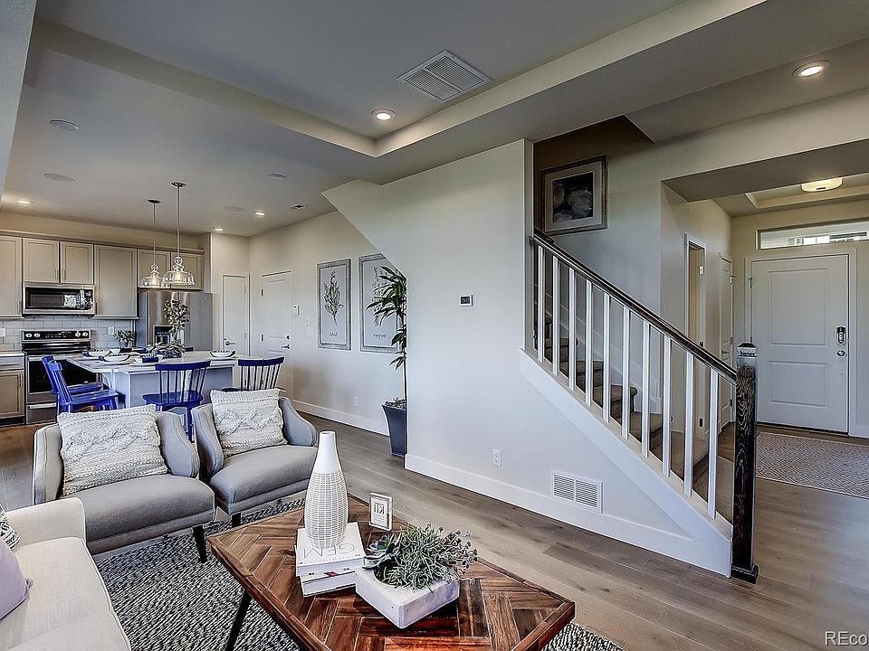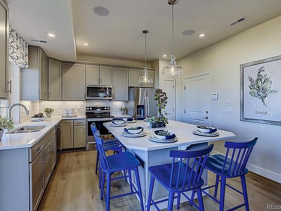 The Surrey floorplan from our popular Carriage House Collection blends style with innovation in a home crafted for flexibility, affordability, and efficiency. This single-family, 3-story layout spans 1,901 square feet and offers 4 bedrooms, 3.5 bathrooms, and an oversized 2-car garage. Enjoy the convenience of low-maintenance living in this open-concept layout that beautifully combines contemporary architecture with designer finishes. This home is set on a private cul-de-sac and has plenty of curb appeal featuring a stylish multi-dimensional exterior, front yard landscaping, front porch, and privacy fencing. The interior is bright with oversized windows for an abundance of natural light. Enjoy designer LVP flooring, Shaw carpeting, Whirlpool appliances, Delta faucets, and Sherwin-Williams paint throughout the home, plus 9’ ceilings on the main floor. The kitchen is complete with a dining island, stylish countertops, stainless-steel and a double-bowl sink. The spacious primary suite and bathroom boast a large walk-in closet, double-vanity sink, and a spa shower featuring a tile finish with exterior windows. The expansive third-floor loft offers a versatile smart space adaptable to any lifestyle need, be it a kid’s playroom, home office, or yoga and painting studio. Set in the desirable location of Reunion, enjoy life in this amenity-rich, family-friendly community featuring 52 acres of parks, 10 miles of trails, a community coffee house, and a 21,000 square foot recreation center with a pool.