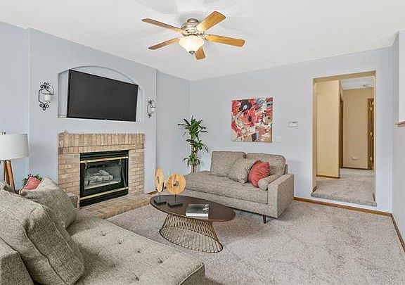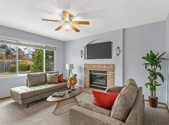 Welcome to Stonegate, a community desired for the great location and easy access to everything. This corner lot is 6,360 square feet, larger than the average lot in this neighborhood. Featuring three bedrooms, three bathrooms, gas fireplace, fenced backyard and a plumbed, unfinished basement waiting for your ideas. The study with French doors on the main level could be a fourth bedroom with a 3/4 bath conveniently located next to it. New carpet throughout and all appliances included. Welcome home!