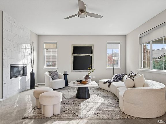 Pride of ownership radiates in this Anthem Highlands gem—offering style, space, and an unbeatable location. Just a short walk to Thunder Vista K-8 and the incredible Anthem Highlands amenities—including pools, tennis courts, rec center, and miles of trails—this 4BR/4BA home with finished basement is designed for today’s lifestyle. At the heart of the home, the gourmet kitchen is both beautiful and functional, featuring quartz countertops, GE stainless appliances, a 5-burner gas cooktop with hood, double ovens, refrigerator, 42” cabinets, and a huge walk-in pantry. The oversized island is perfect for gathering with friends, helping with homework, or casual meals, while the built-in desk adds a convenient spot for keeping the household organized. The main level is filled with thoughtful details: upgraded and extended tile flooring, a cozy gas fireplace with stylish tile surround, pre-wiring for pendants and surround sound, and a sunroom/dining option for hosting memorable meals. A main-floor flex space with built-ins is ideal for a home office, playroom, or formal living, while the laundry with sink (washer/dryer included!) completes the level. Upstairs, the spacious primary suite is a private retreat with amazing views plus a deluxe bath featuring a huge walk-in shower and enormous walk-in closet. A versatile loft provides extra living space for movie nights, homework, or lounging. The finished basement adds even more to love, with a large recreation room, fourth bedroom, ¾ bath, and abundant storage—including an extra refrigerator. Step outside to enjoy Colorado living at its best: a covered patio with sun shades, professional landscaping, and custom window well covers. The oversized side-load 2-car garage is finished, insulated, and includes a storage shed. Extras like Jelly Lights, custom blinds, and a Ring doorbell make this home as move-in ready as it gets. With every detail considered and the unmatched Anthem Highlands lifestyle, this one is a must see!