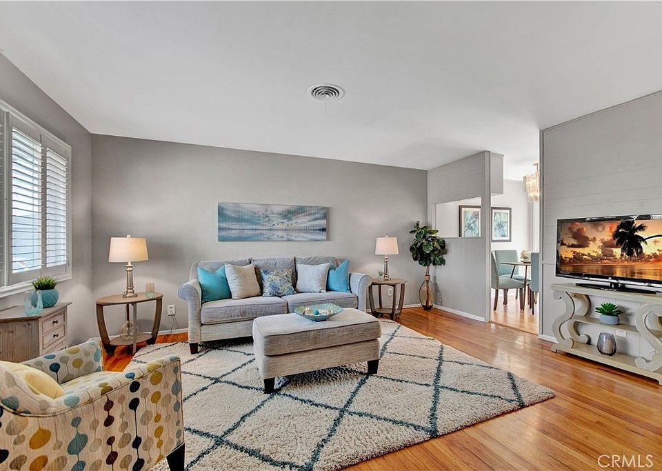 Did you think the possibility of owning a lovely single family home, with a big yard, no HOA dues and in the Huntington Beach Unified school district, had passed you by? Think again. It’s here, it’s now and if you miss it, you’ll be kicking yourself. This charming doll house has room for interior and exterior expansion. Gleaming hardwood floors in the living room, hallway and bedrooms showcase the new neutral paint, plantation shutters, dual pane windows, ceiling fans and smooth ceilings. Adjacent to the living room is the dining nook and kitchen with white cabinets, white countertops and black appliances. No need to schlep your laundry anywhere. The washer and dryer are included, behind the accordion doors adjoining the kitchen. Take a stroll down the hall and on the right is the first of three bedrooms. Opposite the first bedroom is the hall bath with walk-in shower. The linen closet is at the end of the hall adjacent to the third bedroom. The primary bedroom offers an en suite bath and a view of the rear yard. Adding to the value and desirability of this home is the composite shingle roof in 2016, new attic insulation (11/22), two car garage with storage and a new (2022) water heater. The furnace, was installed in 2010 it is in the garage and, under an annual maintenance contract. Your life just got made with the expansive, multi-functional backyard with lush lawn, patio areas for al fresco dining, block wall fencing for privacy, and garden spaces to nourish your body, feed your soul and relax your spirit. The Stardust neighborhood is bordered by both Fountain Valley and Huntington Beach and offers the best of each. Two golf courses, sports fields and tennis courts, archery, picnic spaces and play centers are just East on Heil to Mile Square Park. Want more? Shops, restaurants and health clubs are all nearby. Educational opportunities are provided by HB Oceanview schools. Easy 405 Freeway access makes your commute a breeze. Life is what you make it and yours just got exceedingly better. Welcome home.